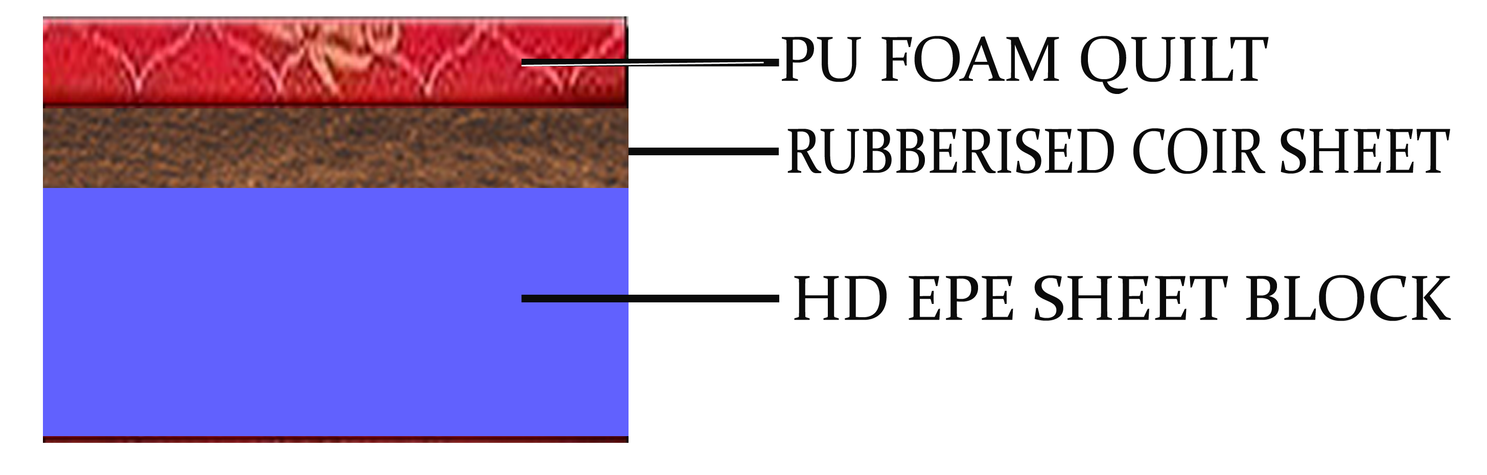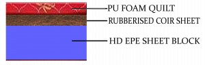 - Rubberised Coir sheet on top to provide support to body weight and spring effect.