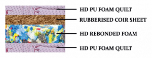 1.      Rubberised coir sheet on top to provide support to body weight and spring effect.